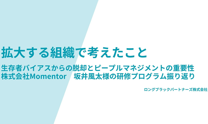 - 拡大する組織で考えたこと~生存者バイアスからの脱却とピープルマネジメントの重要性 株式会社Momentor 坂井風太様の研修プログラム振り返り~